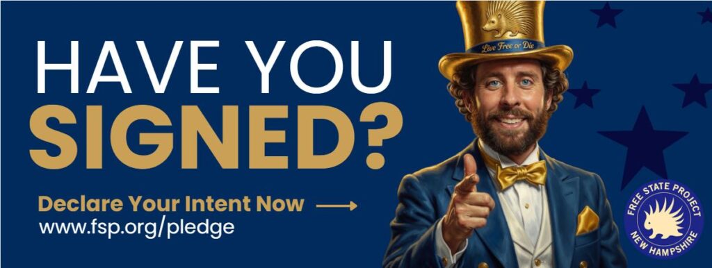 “I hereby state my solemn intent to (1) live in New Hampshire and (2) exert my fullest practical effort toward the creation of a society in which the maximum role of government is the protection of individual rights to life, liberty, and property.