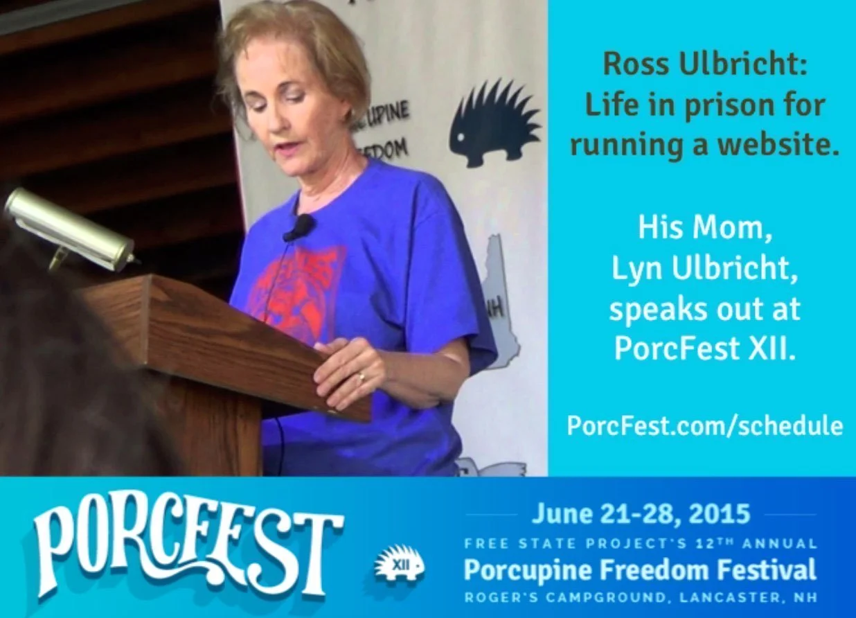 His mom, Lyn Ulbricht, became a regular speaker at PorcFest, rallying support to her son’s cause every year as the momentum grew for his pardon and release.